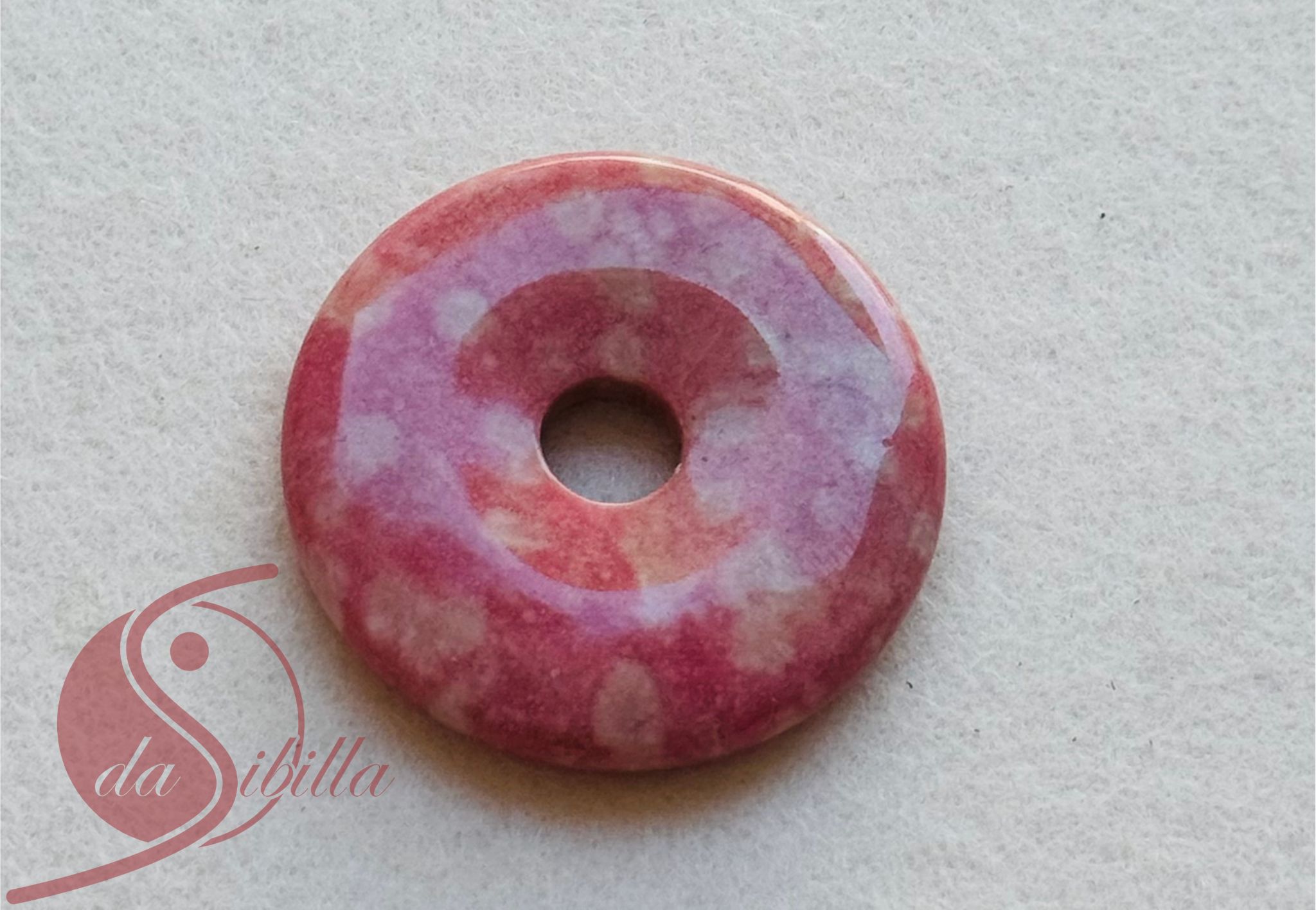 Dieser kraftvolle Donut aus Thulit (roter Zoisit) hat einen Durchmesser von ca. 4cm.