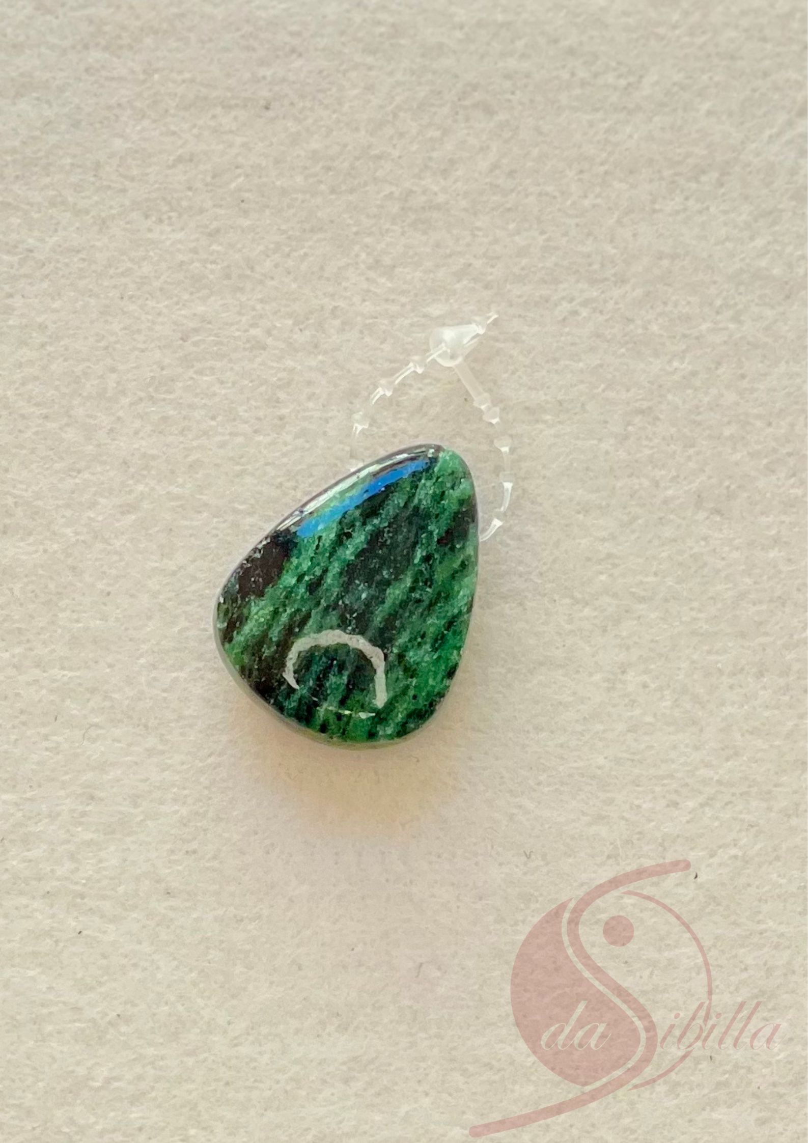 Du kaufst 1 gebohrten Trommelstein aus Zoisit, ca. 3–4cm groß, mit einer Bohrung von ca. 2,5mm – ideal für Lederband oder Stoffkordel.