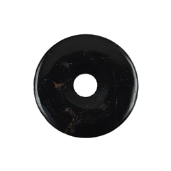 Der Donut aus Schörl (stabilisierter Schwarzer Turmalin) mit 40mm Durchmesser ist ein vielseitiges Schmuckstück mit kraftvoller Schutzwirkung. Ob in Halsketten eingearbeitet, in Creolen platziert oder als Anhänger an einem Band getragen – dieses edle Stück zieht alle Blicke auf sich.