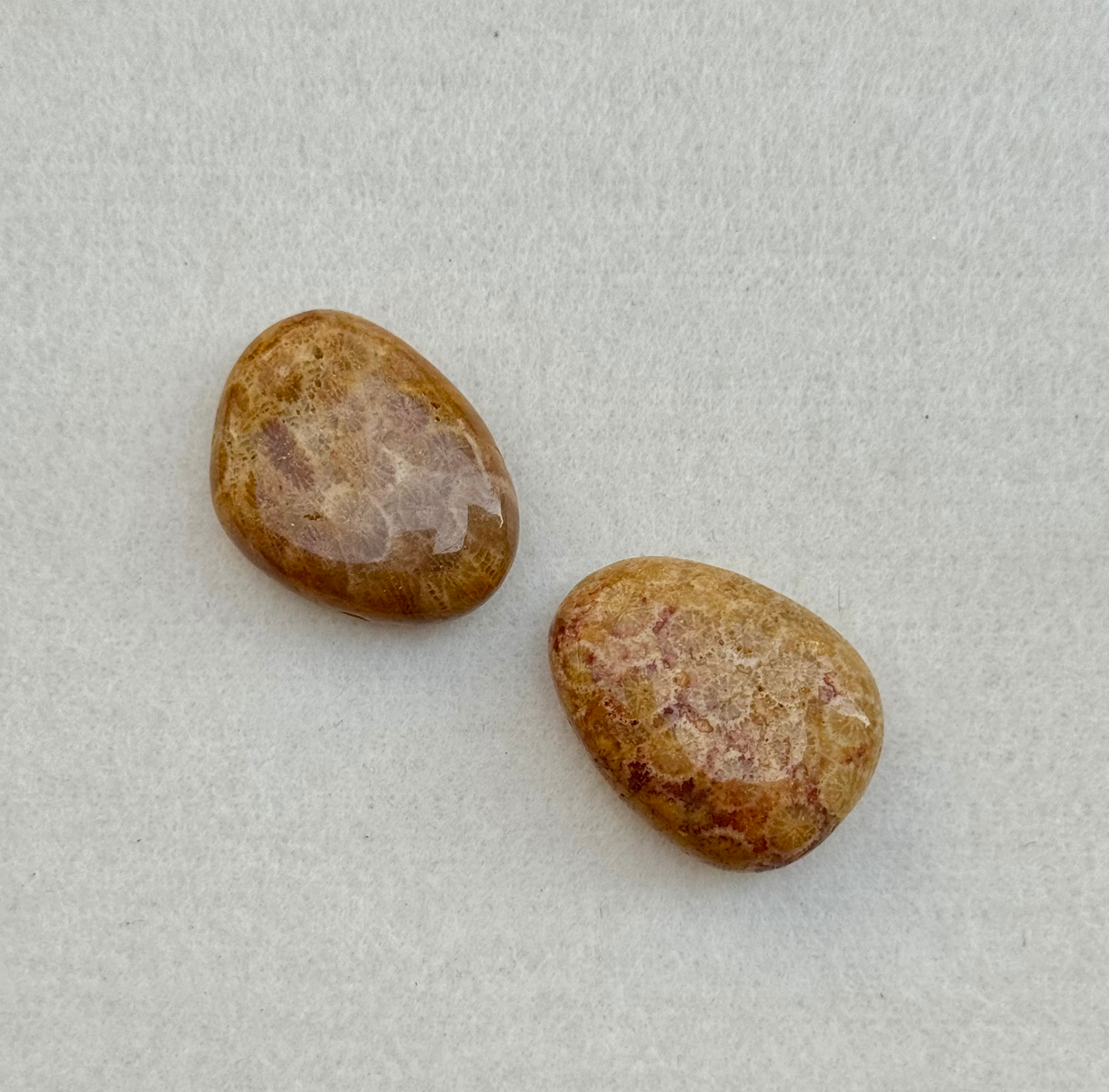 Trommelstein versteinerte Koralle gebohrt – Gemeinschaft & Harmonie Ein Stein aus vergangener Zeit, lebendig in seiner Wirkung: