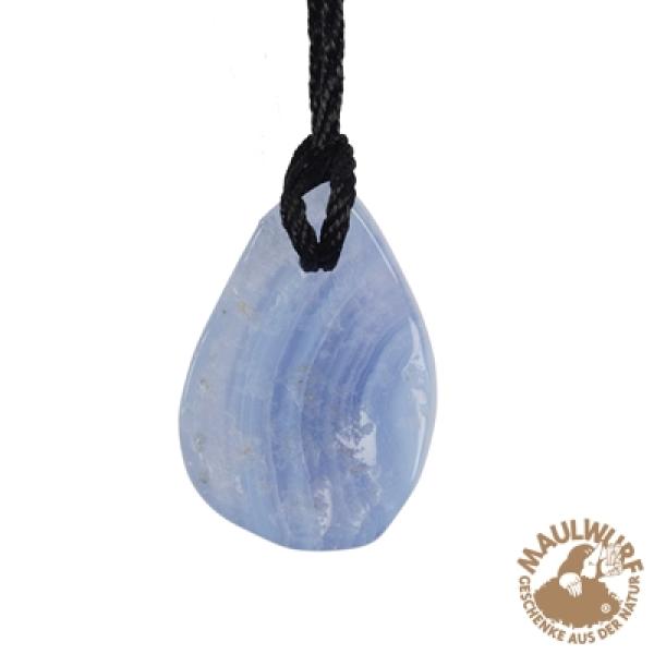 Ein seltener Schatz in kräftigem Himmelblau: Dieser Freiform-Anhänger aus blauem Chalcedon begeistert durch seine intensive Farbe und die zarte natürliche Bänderung. In dieser Qualität ist blauer Chalcedon heute nur noch selten zu finden – ein echter Blickfang und zugleich ein bewährter Heilstein der Ruhe und Kommunikation. Jeder Anhänger ist ein individuelles Naturstück, ca. 4 cm groß und frontgebohrt (ca. 3 mm). Im Lieferumfang enthalten ist ein schwarzes Stoffband mit verstellbarem Verschiebeknoten, das sich flexibel auf eine Länge von 30 bis 60 cm einstellen lässt – sofort tragbar, ganz ohne zusätzliche Zubehörteile.