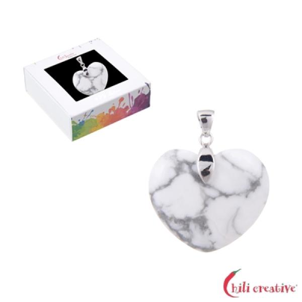 Anhänger Magnesit Herz (28mm) – Rhodiniert, 4,2 cm