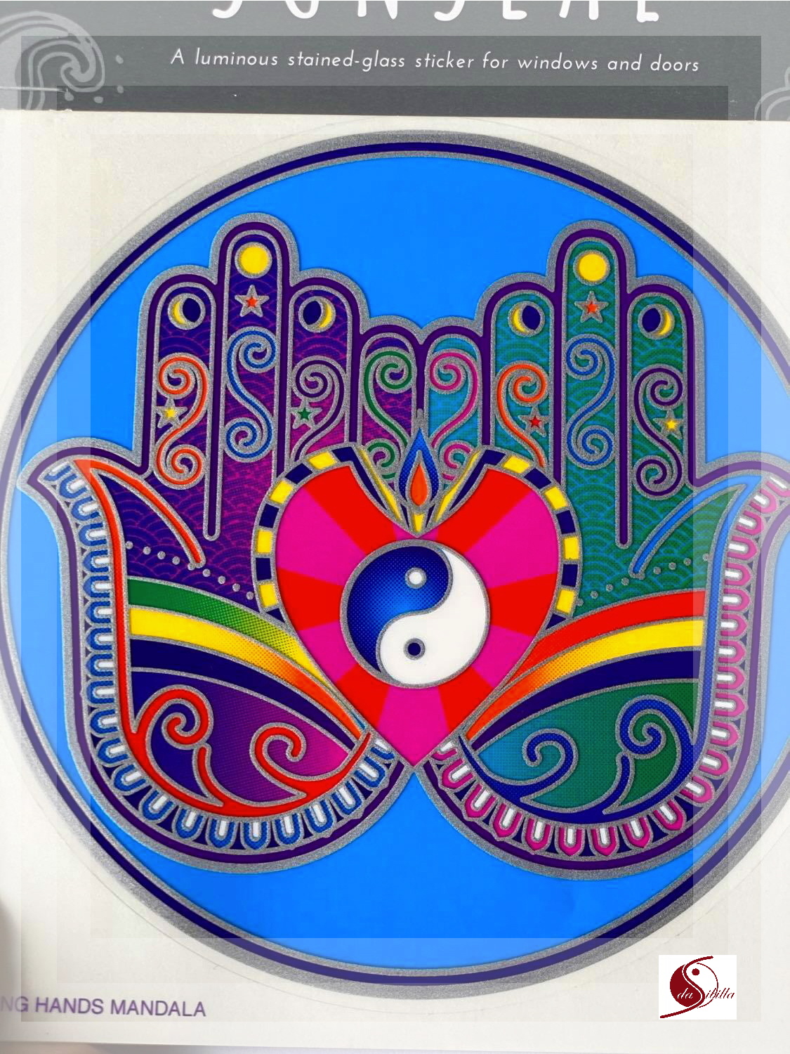 Das Sonnenlichtbild befestigen, indem man oben damit beginnt, den Sticker nach unten und zu den Rändern glatt zu streichen.