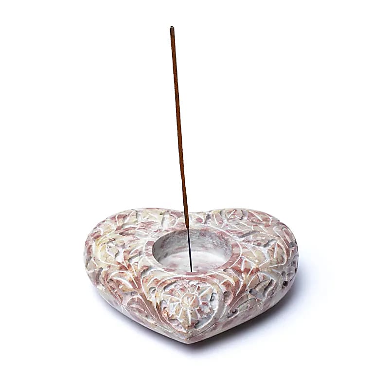 Natürliche Eleganz für Ihr Zuhause Dieser elegante Kerzen- und Räucherstäbchenhalter in Herzform aus Speckstein verbindet Schönheit und Funktionalität. Das natürliche Material sorgt für eine beruhigende Atmosphäre und eignet sich sowohl für Teelichter als auch für Räucherstäbchen. Perfekt für Ihre spirituelle Praxis oder als stilvolles Dekor in Ihrem Zuhause.