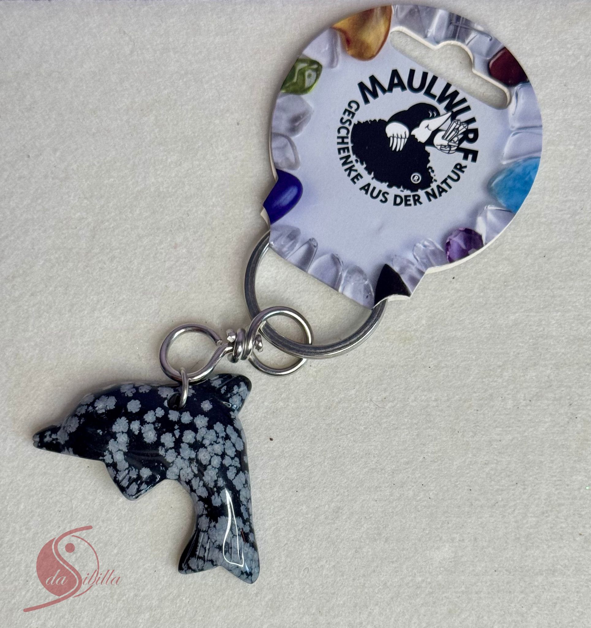 Dieser liebevoll gearbeitete Schlüsselanhänger mit Delfin aus Schneeflockenobsidian (ca. 5,5 cm) verbindet Lebensfreude, Klarheit und Schutz in einem kraftvollen Symbol.