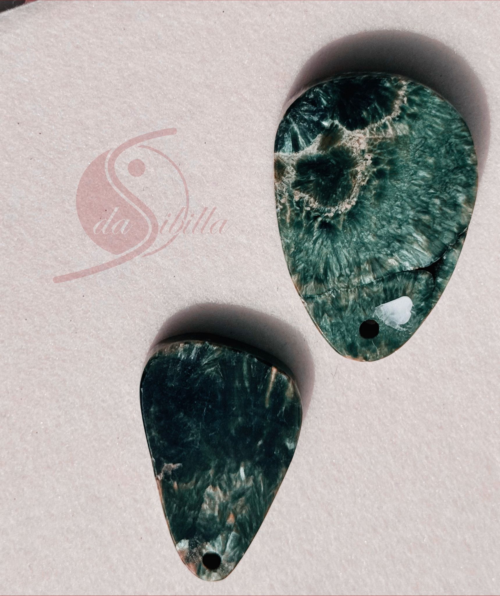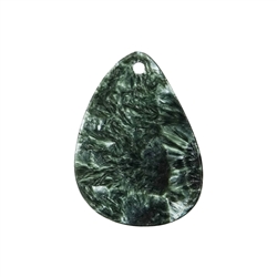 Diese flache Tropfenform aus Serafinit – auch Klinochlor genannt – ist ein ausdrucksstarker Begleiter für alle, die mehr Klarheit und Frieden in Gespräche bringen möchten. Der Stein misst ca. 4,0 bis 5,0 cm und ist frontgebohrt, also von vorne nach hinten durchbohrt – ideal zur Kombination mit Lederband oder Kette.